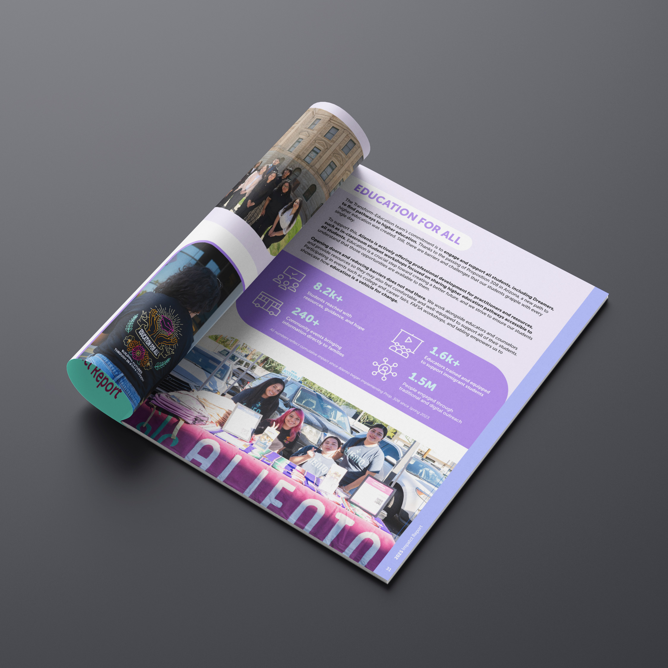 Azteca Graphics partnered with Aliento to design the 2025 Impact Report, a multi-page PDF developed to highlight the organization’s milestones, community initiatives, and advocacy outcomes over the past year. The objective was to create a polished and structured document that could effectively communicate impact to stakeholders, partners, and supporters.